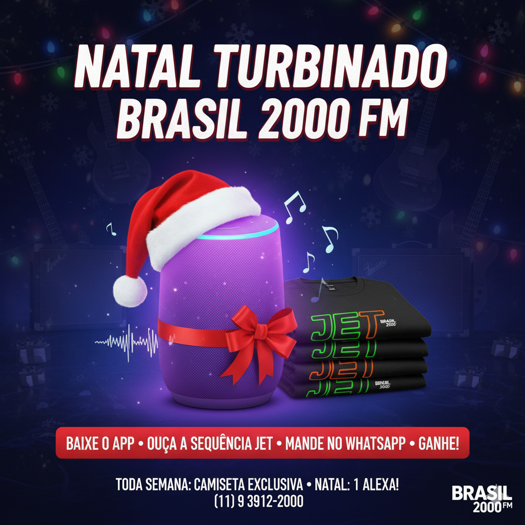 Presente de Natal: Todos que participarem da promoção, durante todo o período, concorrem a uma super ALEXA no sorteio especial de Natal! Imagine só começar 2026 com a sua assistente virtual sintonizada na 2000?